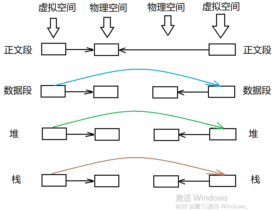 在fork之后exec之前两个进程用的是相同的物理空间(内存区),子进程的代码段、数据段、堆栈都是指向父进程的物理空间,也就是说,两者的虚拟空间不同,但其对应的物理空间是同一个。
