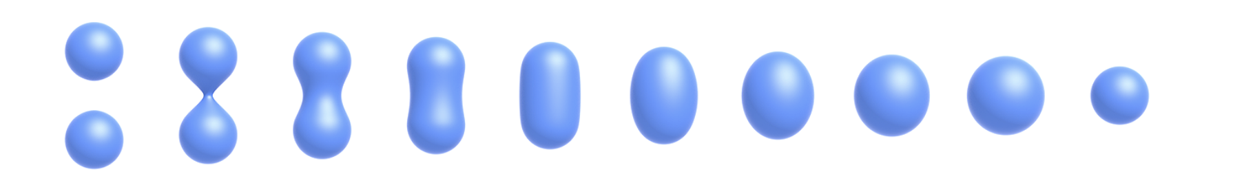 除了对于几何的布尔操作,还可以通过距离函数来得到几何形体混合的效果,如下图: