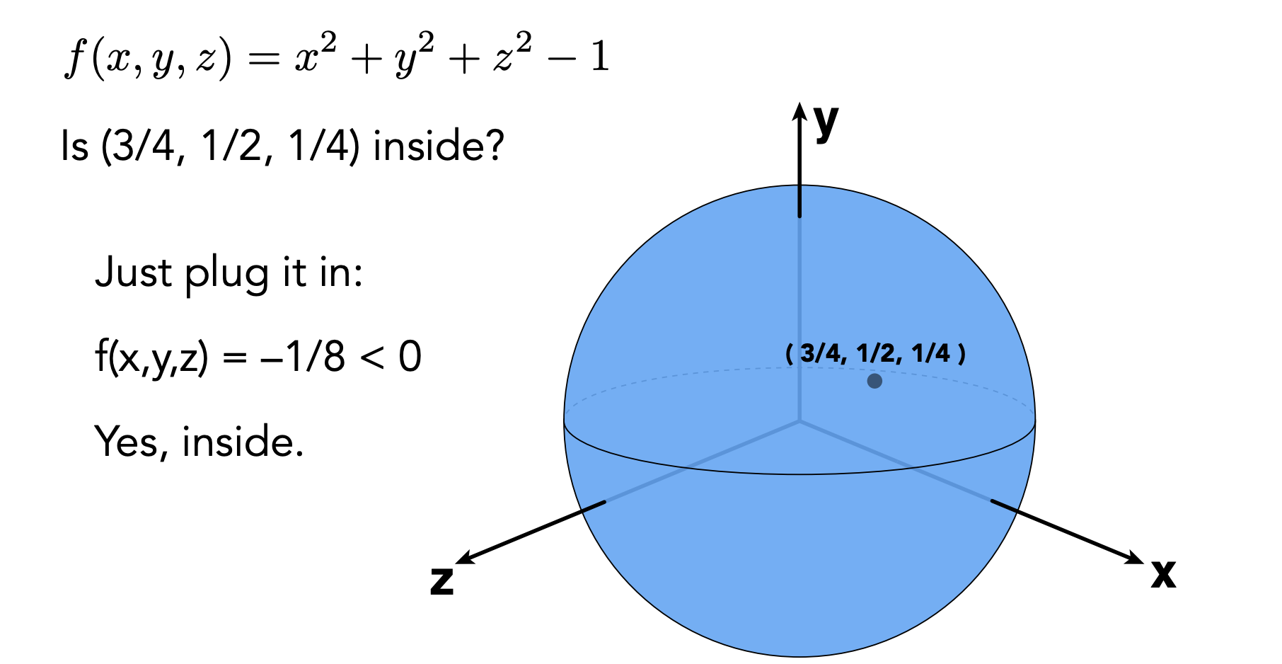 之前提到了隐式曲面难以采样曲面上的点,但是可以轻易判断点与曲面的关系,对于显式曲面来说恰恰相反,我们可以很轻易的采样到所有的点,但是给予你任意一点却很难判断它与曲面的关系!