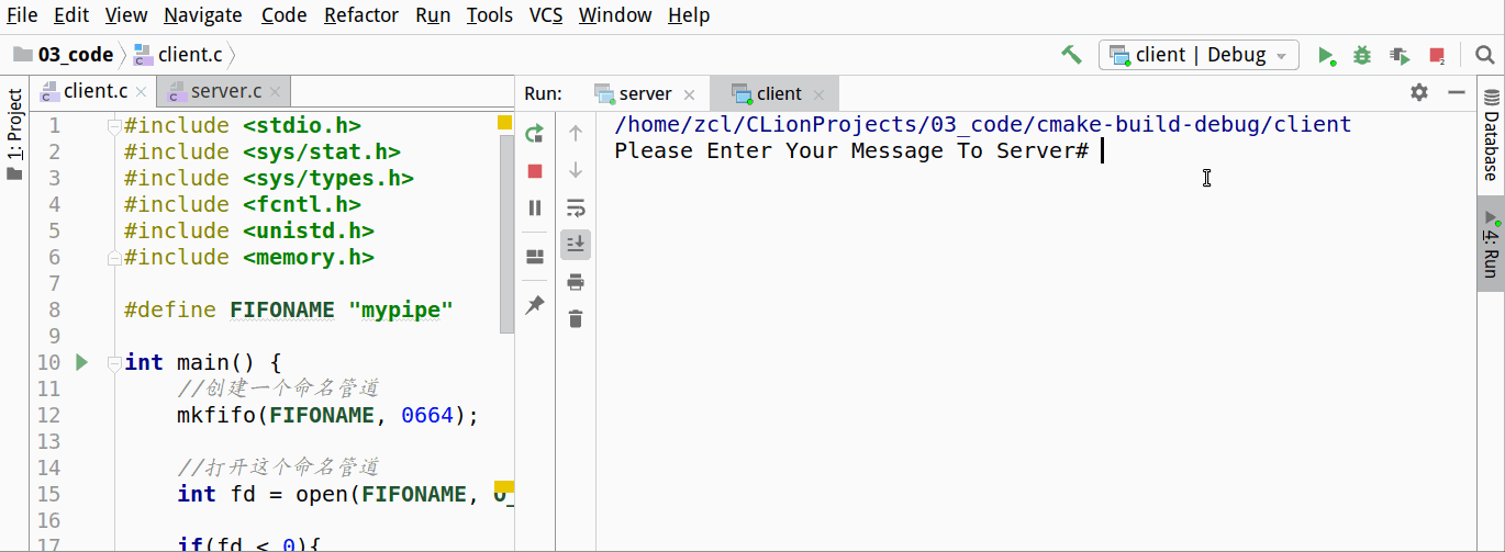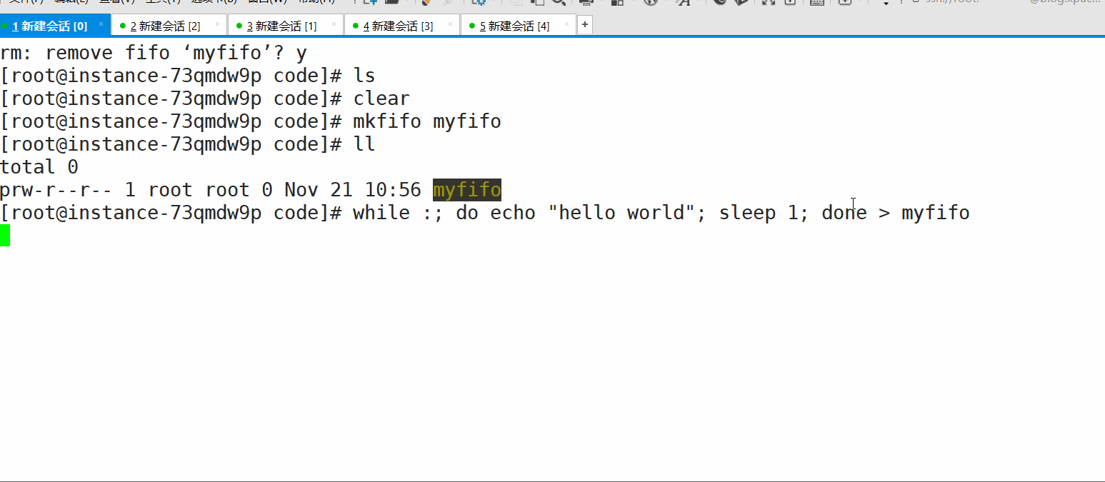 管道应用的一个限制就是只能在具有共同祖先(具有亲缘关系)的进程间通信。 如果我们想在不相关的进程之间交换数据,可以使用FIFO文件来做这项工作,它经常被称为命名管道。命名管道是一种特殊类型的文件! 接下来使用一个脚本来演示用管道进行通信: