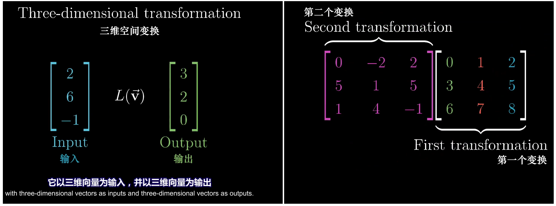 所以3×3矩阵的乘法本质其实依旧是两个线性变换依次作用: