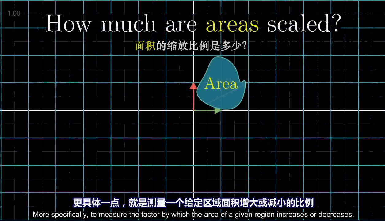 无论方格如何变化,对于其他的方格来说都会有同样的变化,因为线性变换的基本原则就是网格线保持平行且等距分布。对于不是方格的情况,可以用很多方格近似,就和微积分一样的思想。