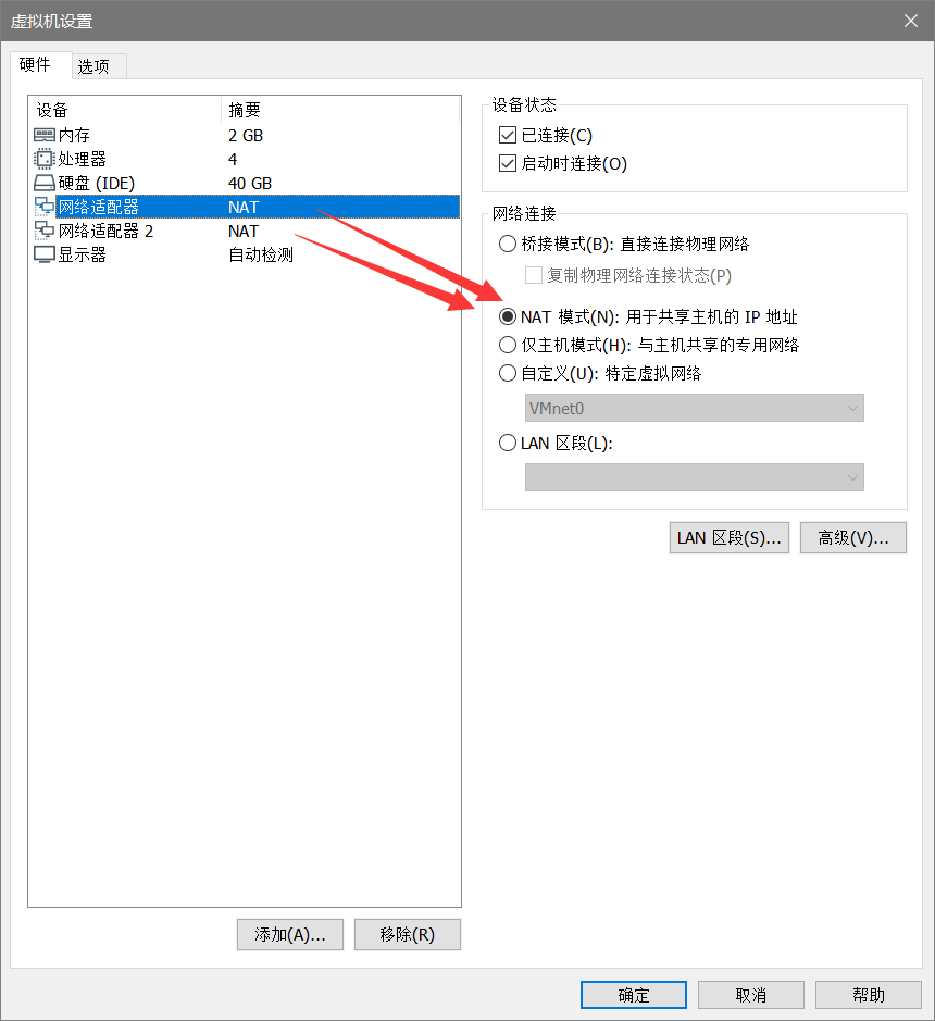 1、虚拟机设置NAT模式