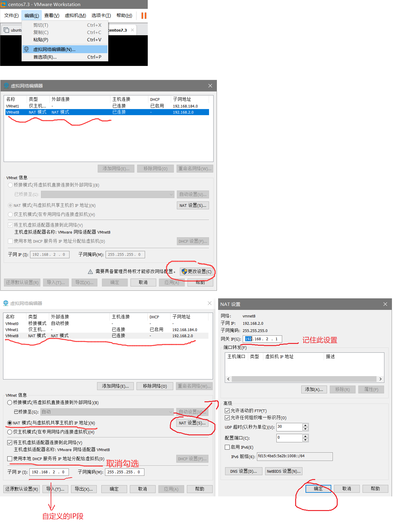 2、配置虚拟机NAT模式参数