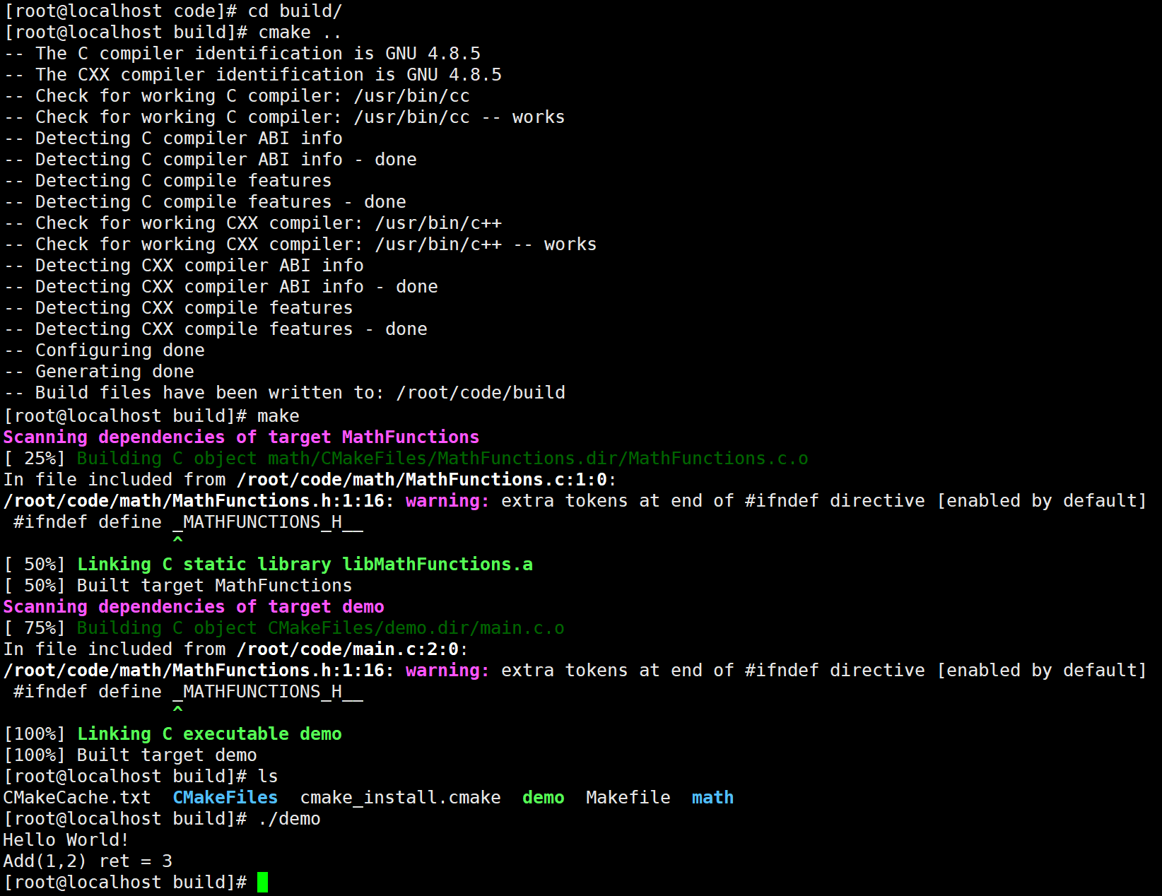 add_executable(demo demo.cpp) # 生成可执行文件
