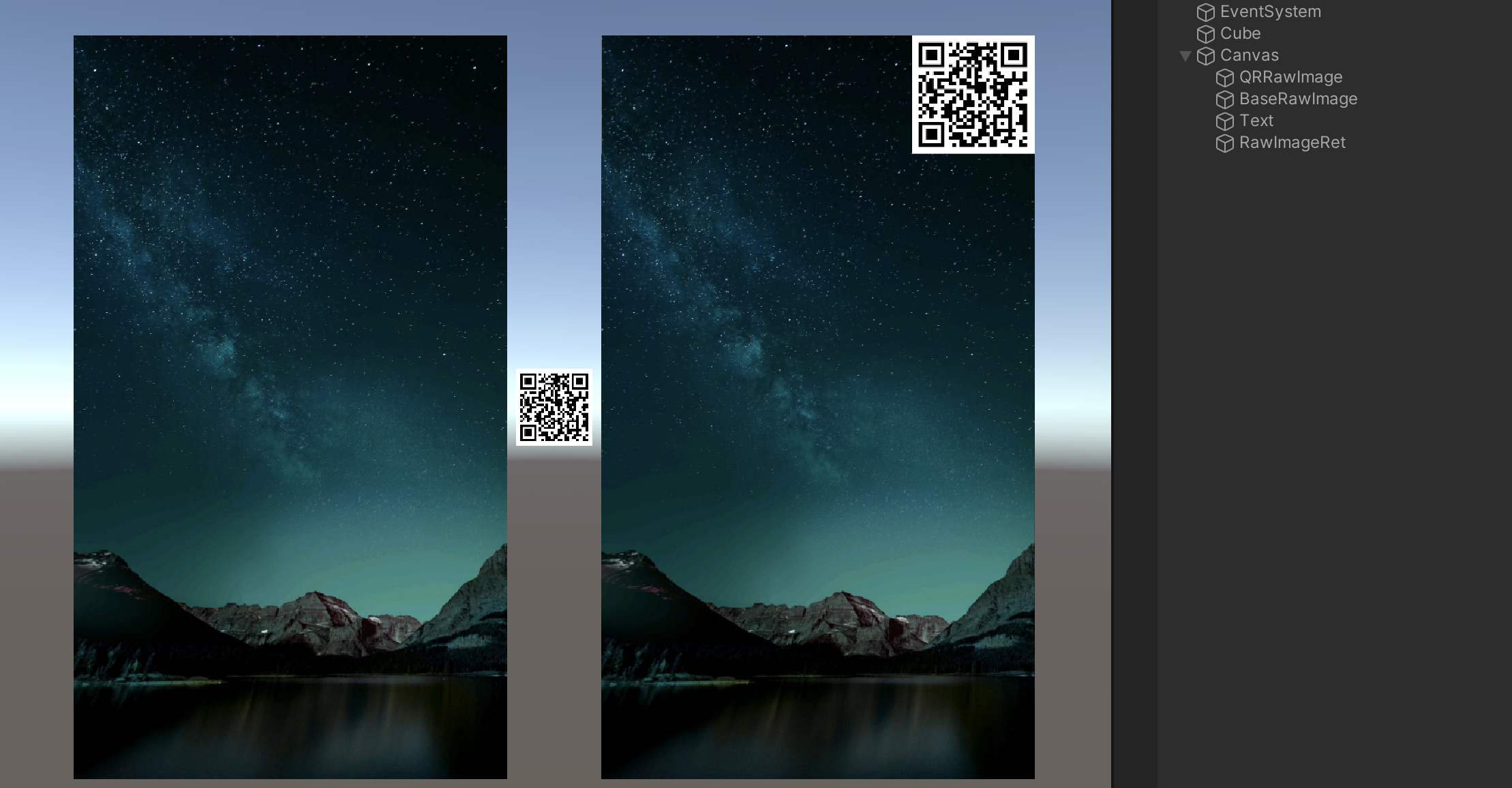 最近项目中遇到个问题,二维码是根据不同的用户信息动态生成的,宣传海报背景是固定的图,现在需要将其拼接在一起并分享出去,目前有两种方案分别适用于不同的情况,分别是用 UGUI 拼接好之后然后截图指定区域分享出去,其次是直接一个一个的操作像素点,这里记录了操作中需要注意的点和详细代码实现。