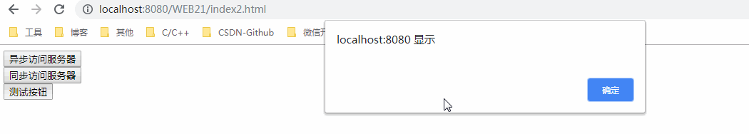 现象很简单,我的测试按钮其实就是弹出一个空的提示框,当我点击异步访问的时候,浏览器会向服务器的servlet发送一个请求,这个请求是获取一个随机数,而且为了模拟服务器长达3秒的运算我让服务器睡眠了3秒钟,点击异步访问后可以立马点击测试按钮弹出提示框,但是点击同步访问后立马点击测试按钮却要等待3秒才会弹出提示框,而且我点击了多次就弹出了多次提示框,相信这个额例子是非常容易理解同步和异步的特点的!