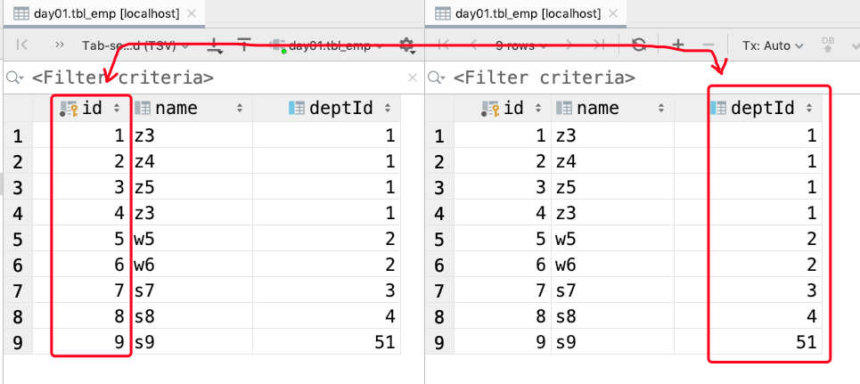 insert into tbl_emp(name, deptId) values ('s9', 51);