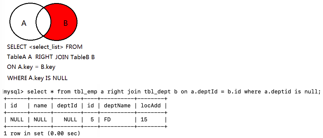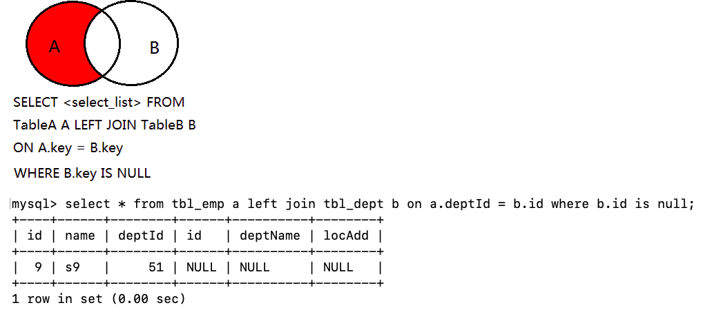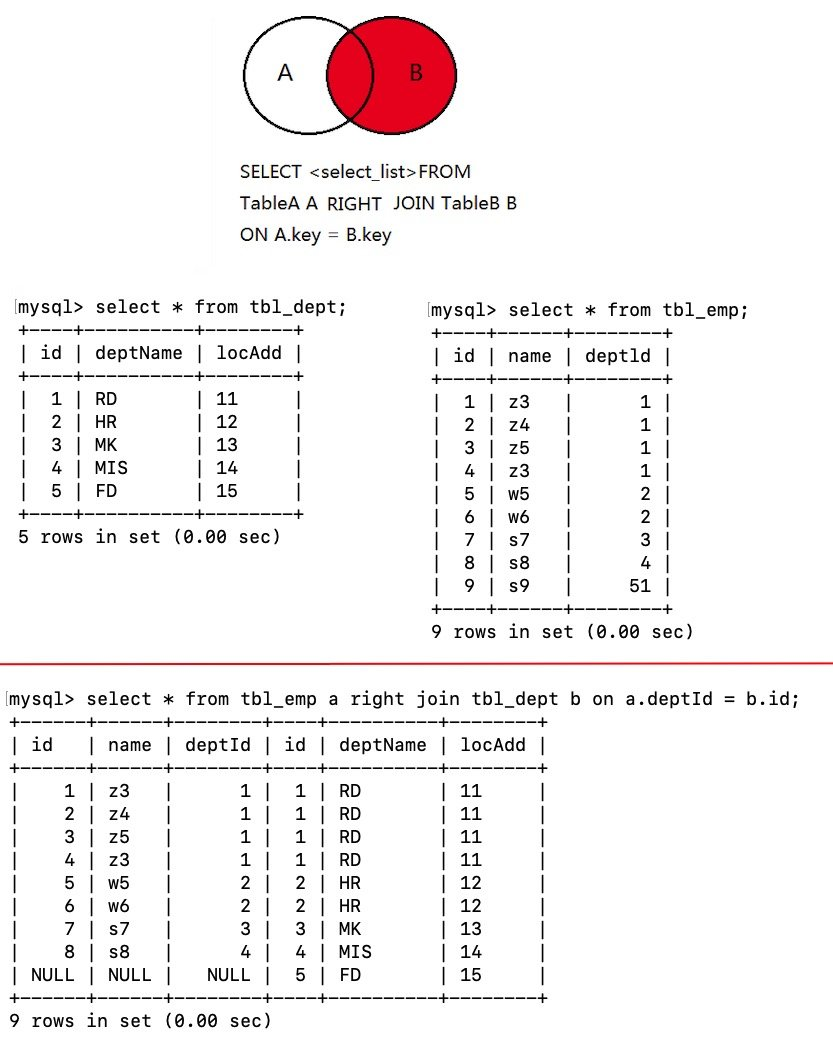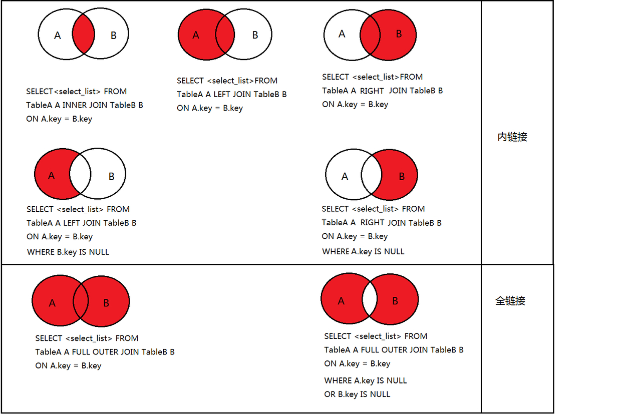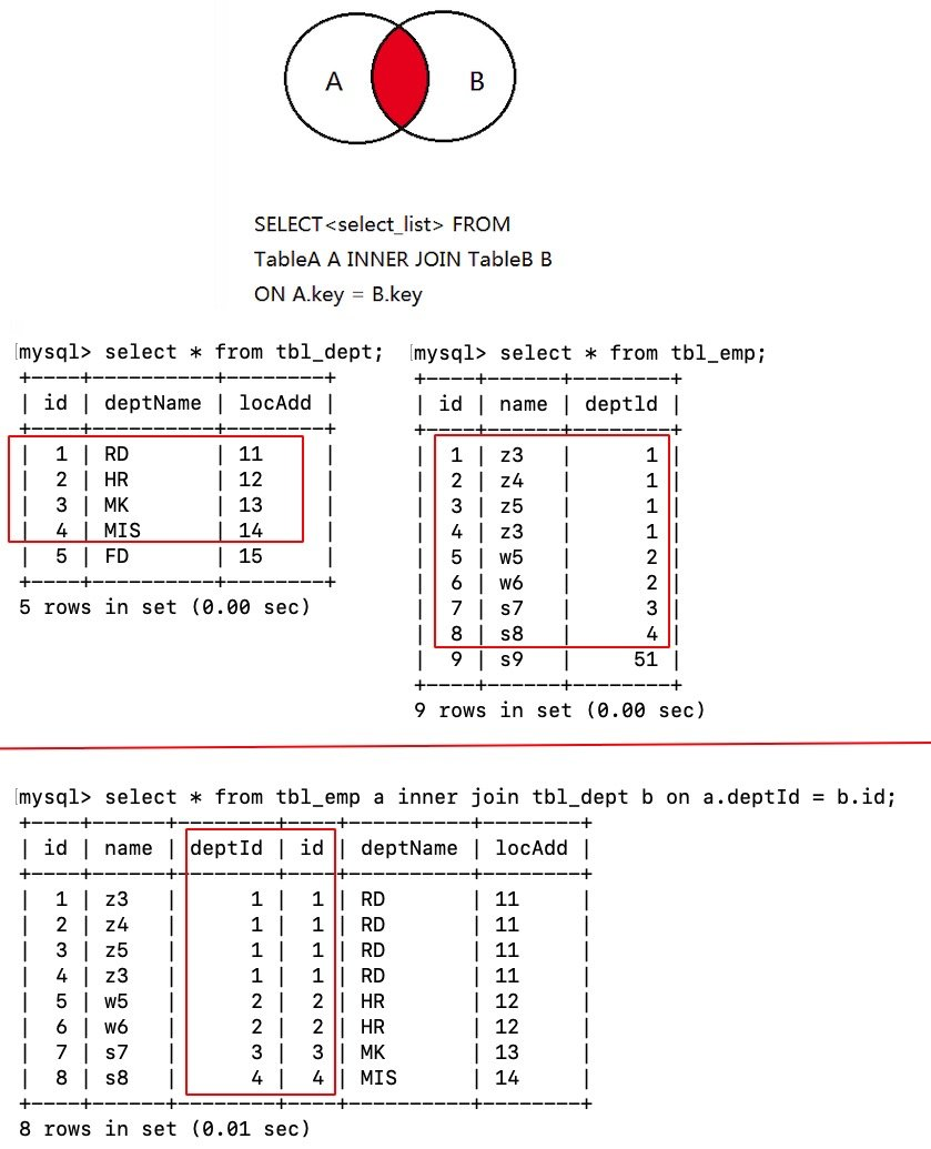 下面是INNER JOIN的查询示例,可以看出查询结果是AB的共有部分: