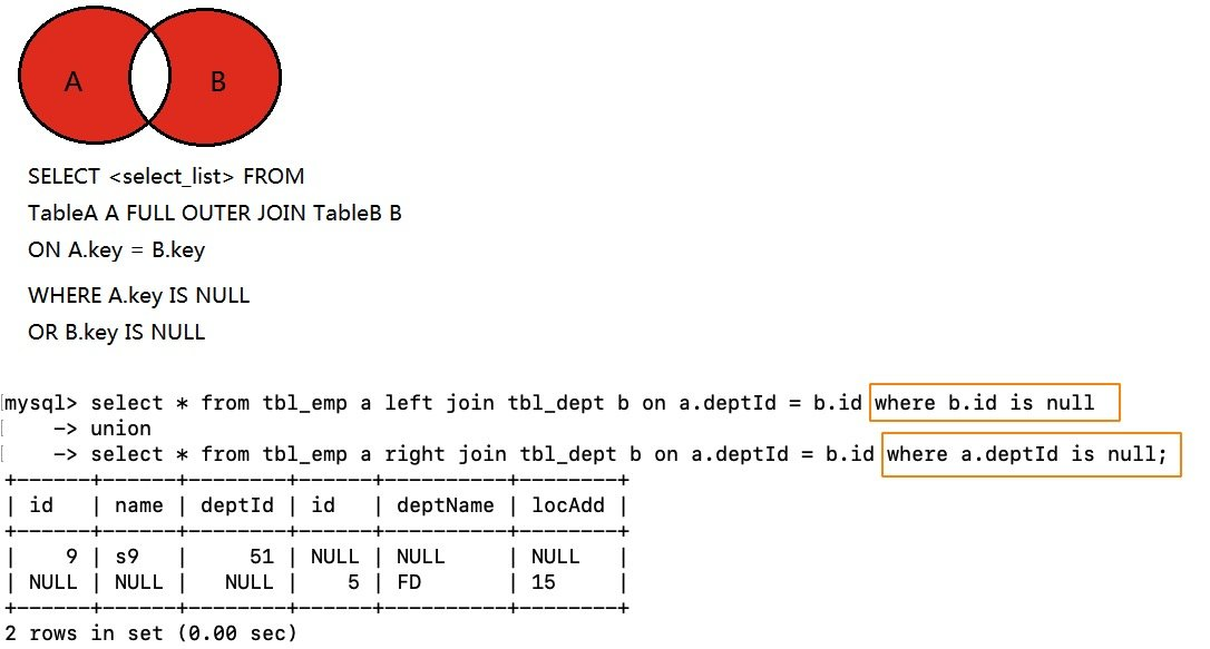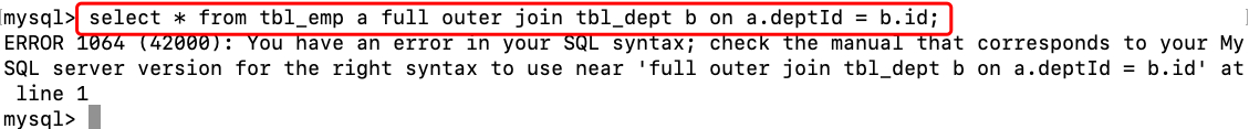 但是却报错了,是因为MySQL是不支持这种语法的,但是Orcal数据库却是支持的,所以这么干:A的独有+B的独有+AB共有,所以需要合并去重的操作,使用union