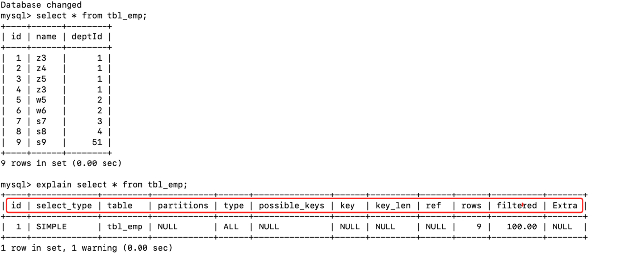 id如果相同,可以认为是一组,从上往下顺序执行;在所有组中,id值越大,优先级越高,越先执行,衍生=DERIVED,所以这里就体现了explain的第一个用处,那就是它能看出表的读取和加载顺序!