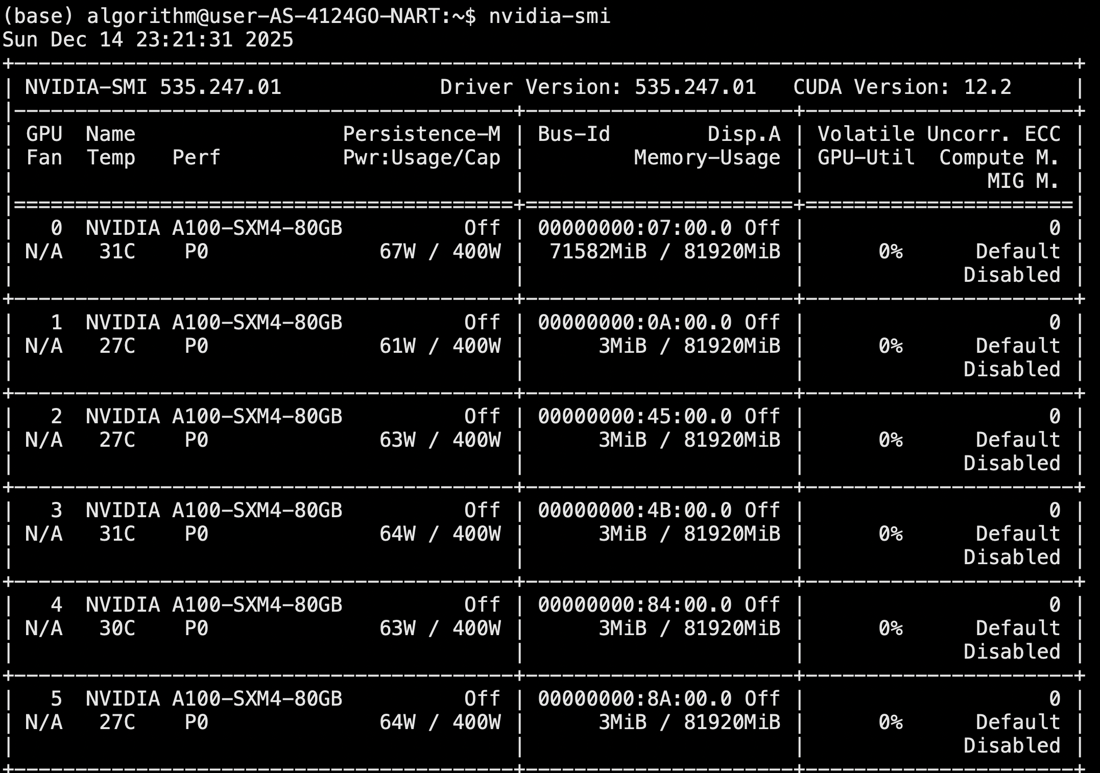 从执行日志可以看到,AutoGLM 在 8 卡 A100 环境下的性能表现: